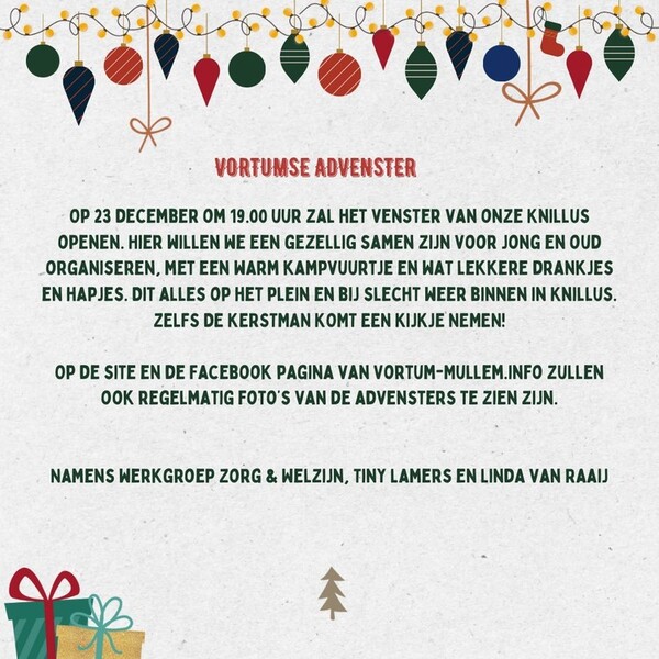 Op de site en de Facebook pagina van Vortum-Mullem.info zullen ook regelmatig foto’s van de advensters te zien zijn.