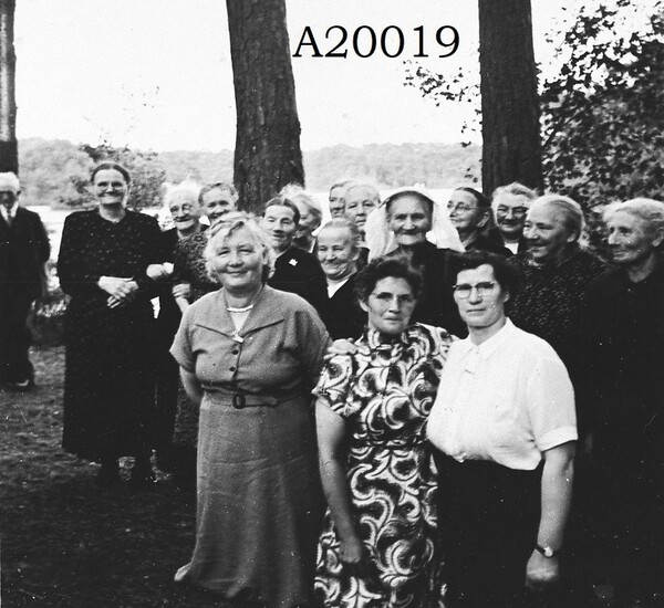Twee foto’s, jonge en oudere mensen. Leuk om weer te zoeken naar de namen van de mensen die op de foto staan. De schoolfoto is S001455, de oudere mensen is nummer A20019