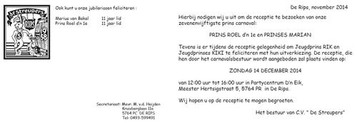 Prinsreceptie Prins Roel en Prinses Marian bij de Streupers!