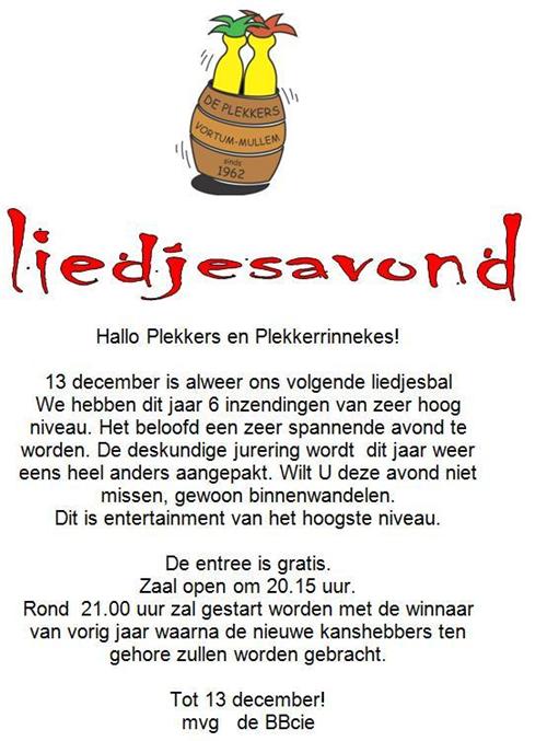 Liedjesbal, zaterdag 13 december 2014