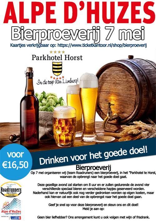 Wij organiseren deze bierproeverij omdat we meedoen aan de Alpe d'HuZes! Tijdens deze gezellige avond krijg je 4 verschillende speciale bieren en verscheidene hapjes geserveerd. Naderhand kan er natuurlijk ook nog op eigen kosten verder gedronken worden, maar ook hiervan zal een deel voor het goede doel zijn!