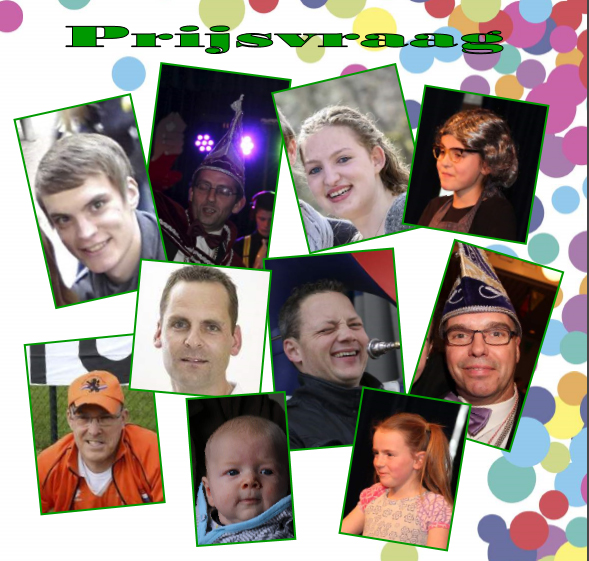 Zoals jullie van ons gewend zijn, zat er ook deze keer ’n puzzel in ‘t Jubelbuukske. Wat leuk en fijn dat we een aantal inzendingen hebben ontvangen! Goed bedacht dat dit allemaal inwoners uit ons Plekkersriek zijn, maar zo makkelijk was het nou ook weer niet... Het enige echte goede antwoord, op de vraag “wat hebben deze mensen met elkaar gemeen” is: “Dit zijn allemaal mensen/kinderen die in een jubileumjaar van de Plekkers zijn geboren”