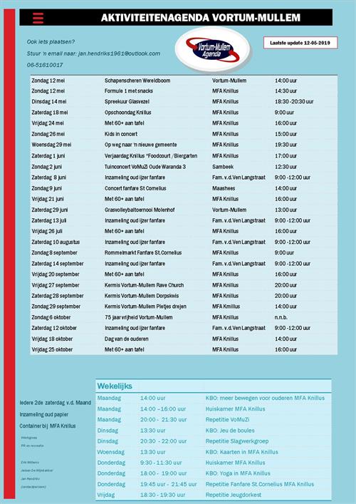 Nieuwe Activiteitenagenda Vortum-Mullem