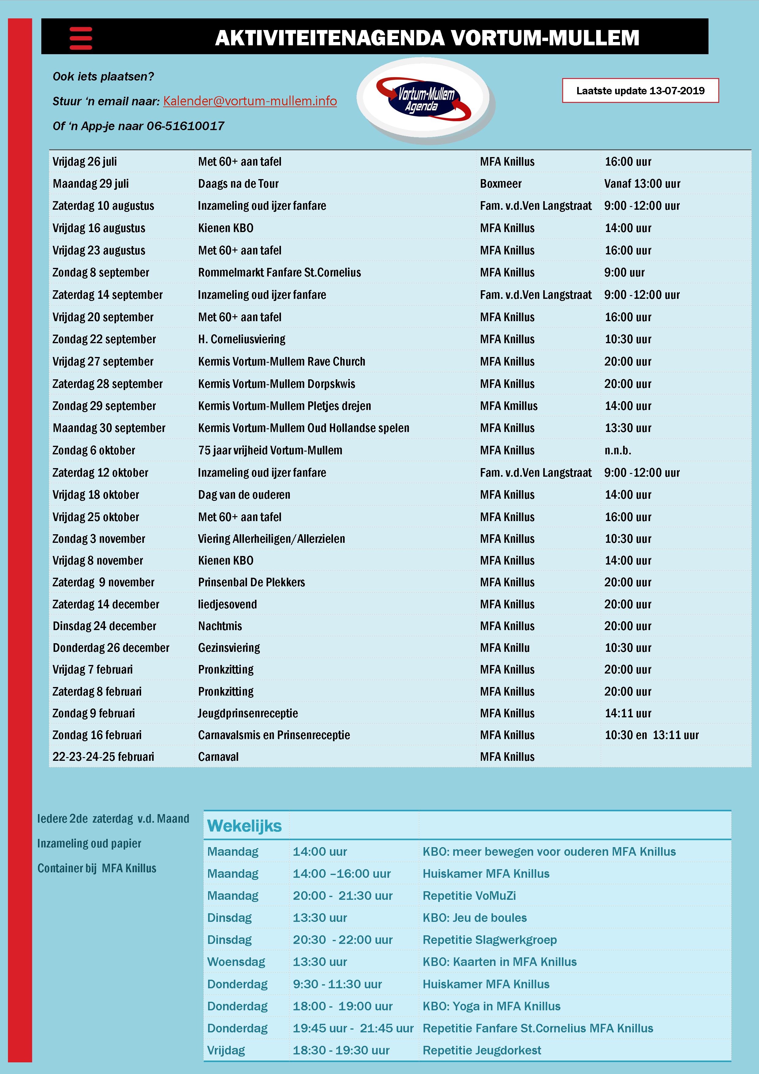 Update activiteitenagenda