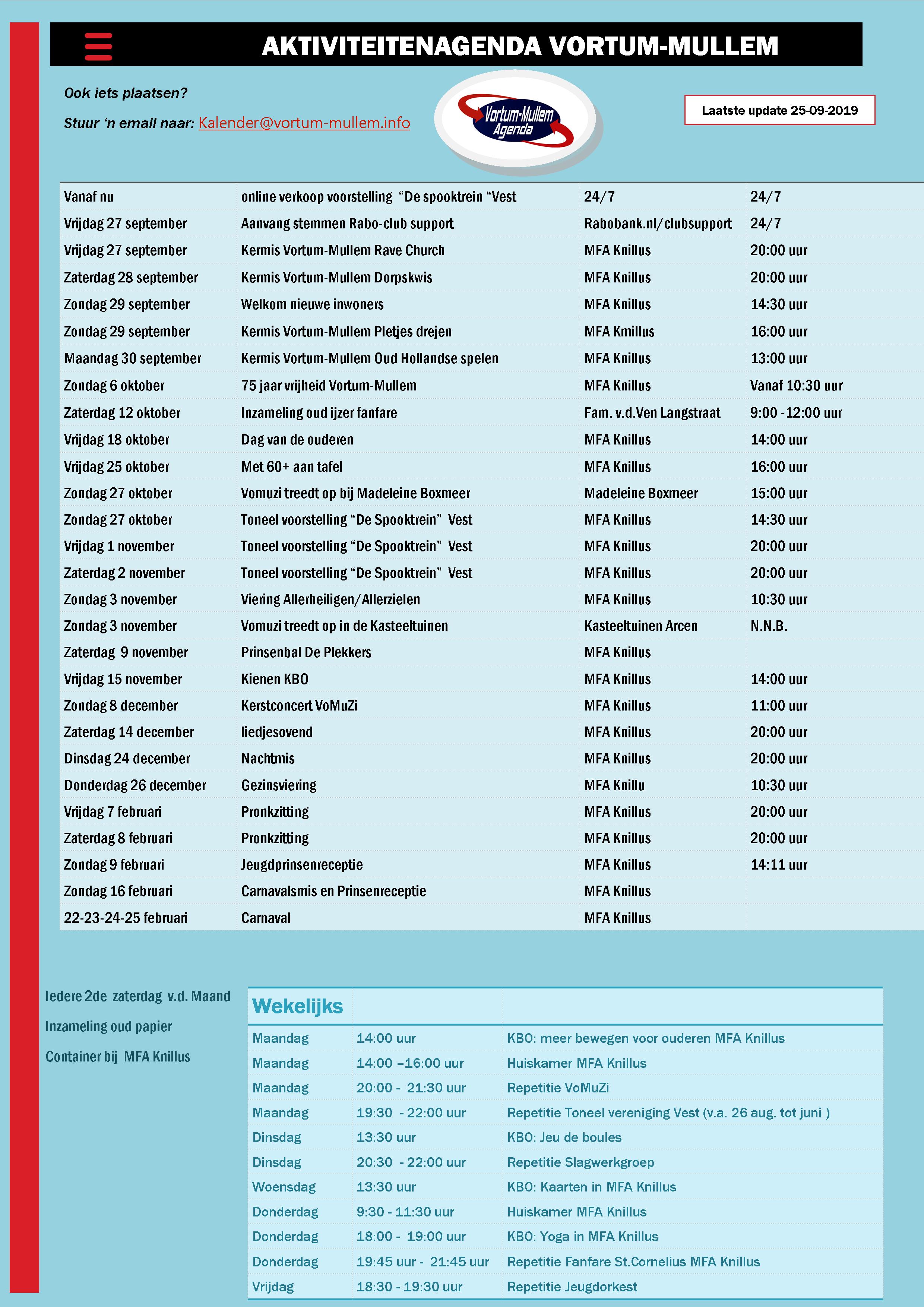 Update activiteitenagenda Vortum-Mullem
