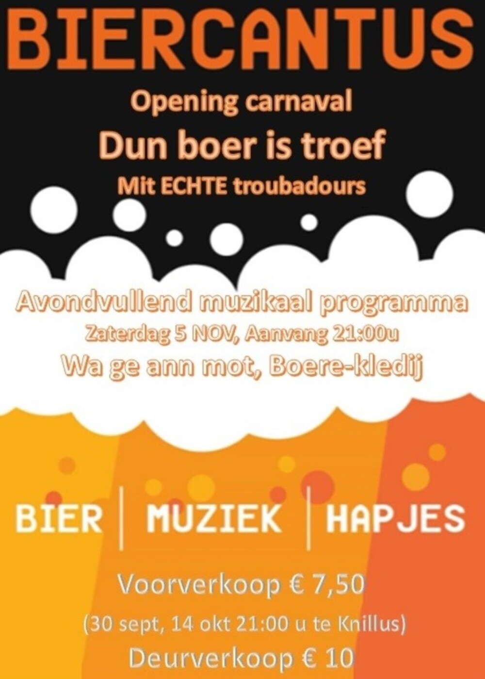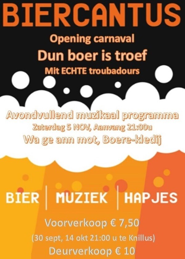 Morgen 30 SEPT 21:00u start de voorverkoop van de biercantus op zaterdag 5 Nov.